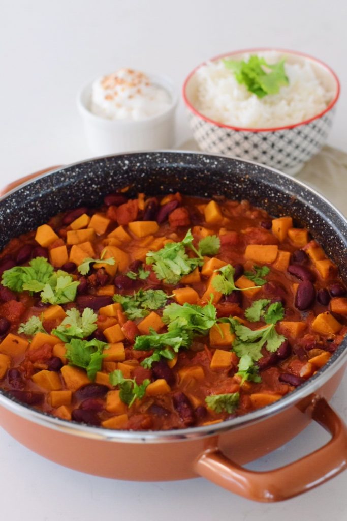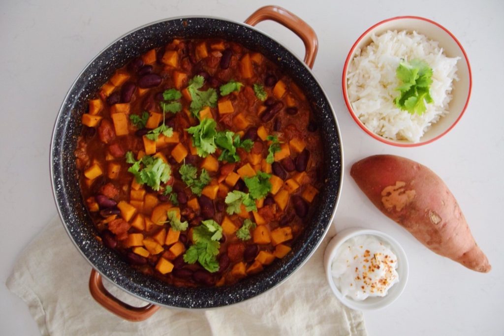 Venku je zatím stále zima, a proto si doma rádi dopřáváme jídla, která zahřejí. A dušené batáty s fazolemi jsou jedním z nich. Jídlo je veganské a krásně vás zasytí. Dokonce i chlapy. Musím se ale přiznat, že tento recept je z velké části inspirovaný jedním receptem z časopisu, který jsem si loni přivezla z Jihoafrické republiky.