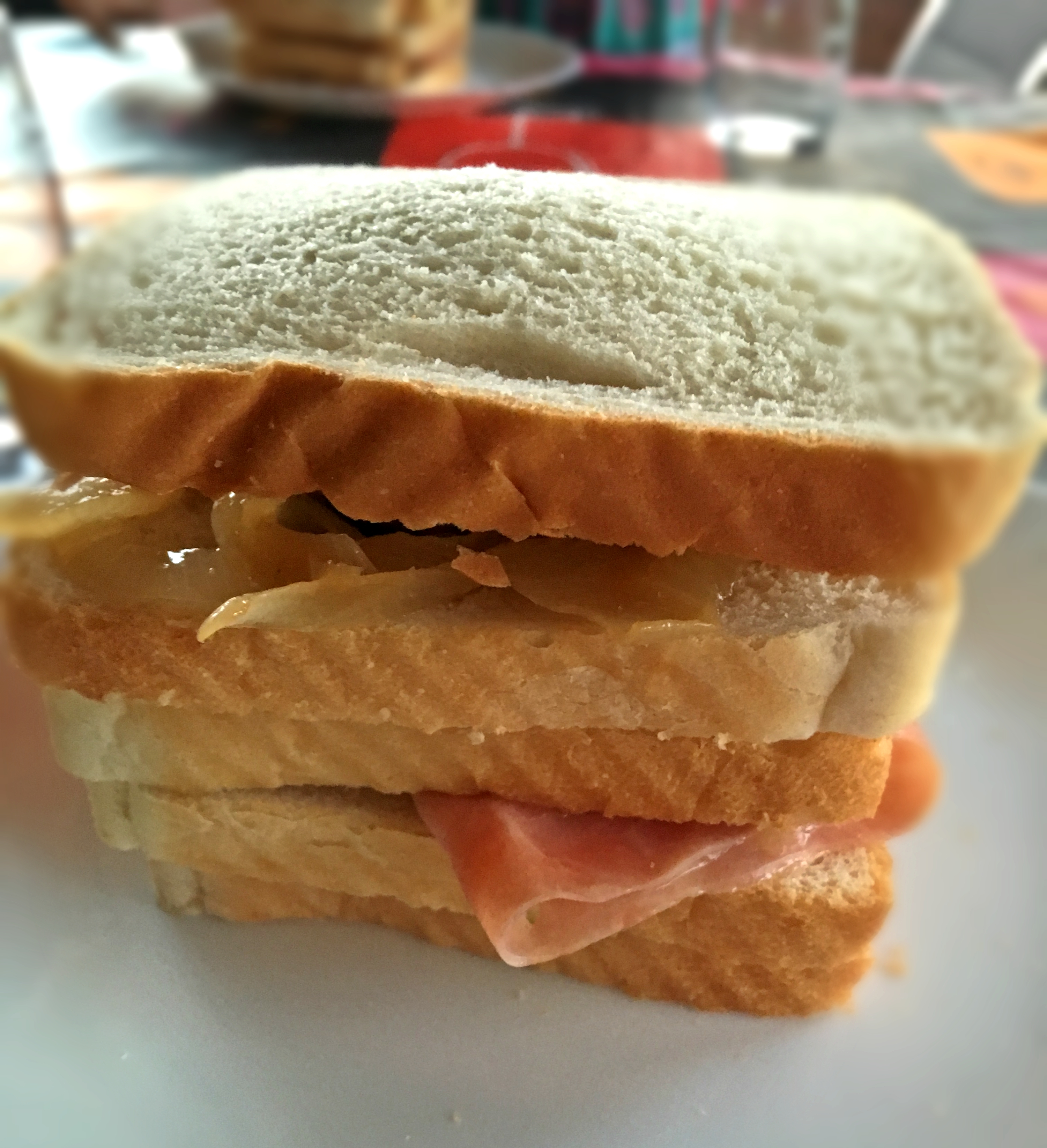 Giga sendvič byl první večeře, kterou mi ve Španělsku rodina uvařila. Na tenhle obrovský a výborný sendvič jsem se těšila celý rok. Loni o něm básnili, ale už nám nezůstal žádný čas ho udělat. A opravdu stál za to! Je tak velký, že musíte mít hodně velkou pusu, abyste do ní narvali všechna patra najednou. Vše dohromady ale chutná úžasně a rozhodně to stojí za vykloubenou čelist 😀