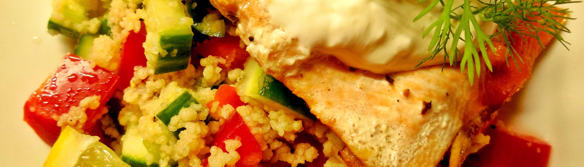 Losos s kuskusem a s koprovým dipem podle Apetitu