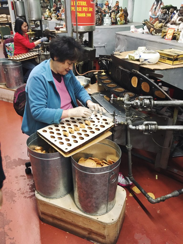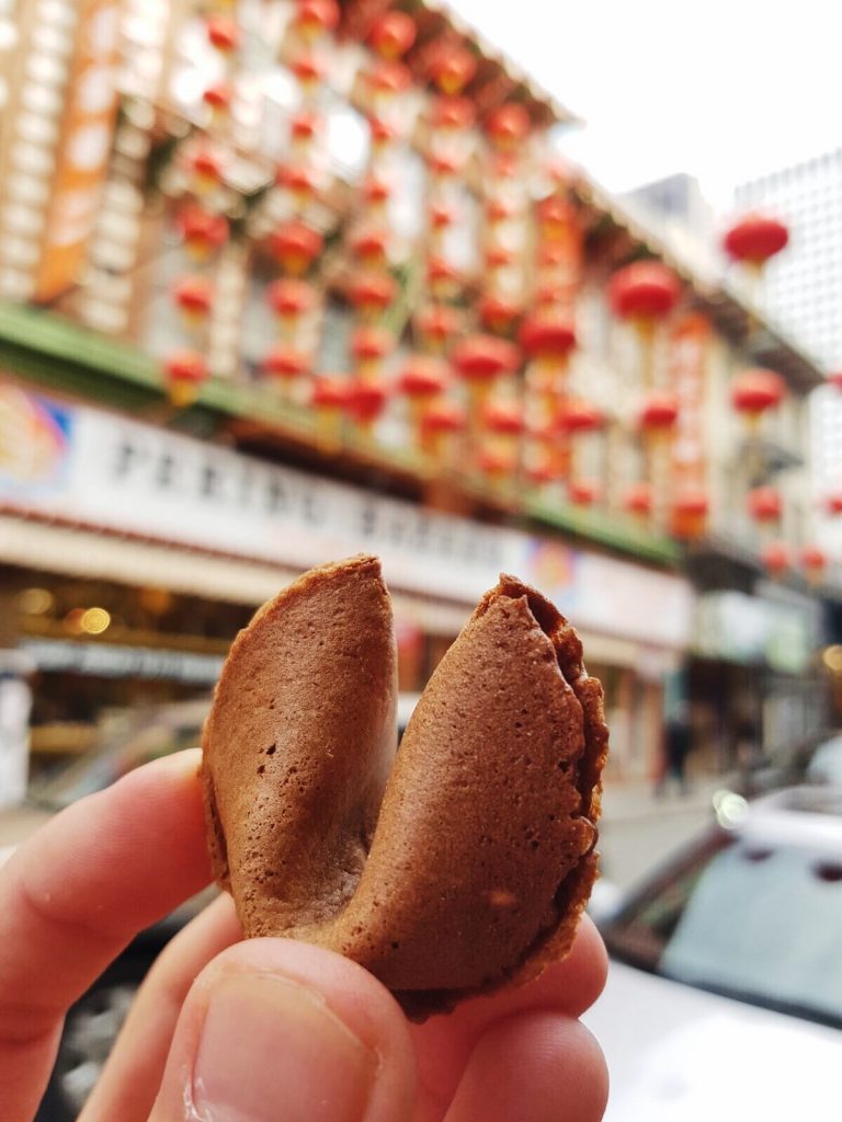Po obědě už pomalu jdeme do hotelu, opět procházíme Chinatown a zkoušíme fortune cookies, které pocházejí ze San Francisca (zajímavé, že?). Bohužel si už nepamatuji, kde přesně jsme si je dali, ale hledali jsme podle foursquare 🙂 Sušenky byly moc dobré, zvláště ty čerstvé – vyrábějí je přímo na místě a nabídnou vám ochutnávku. Fortune cookies tady mají docela promakané – dělají čokoládové, jahodové a s asi milion různými polevami.