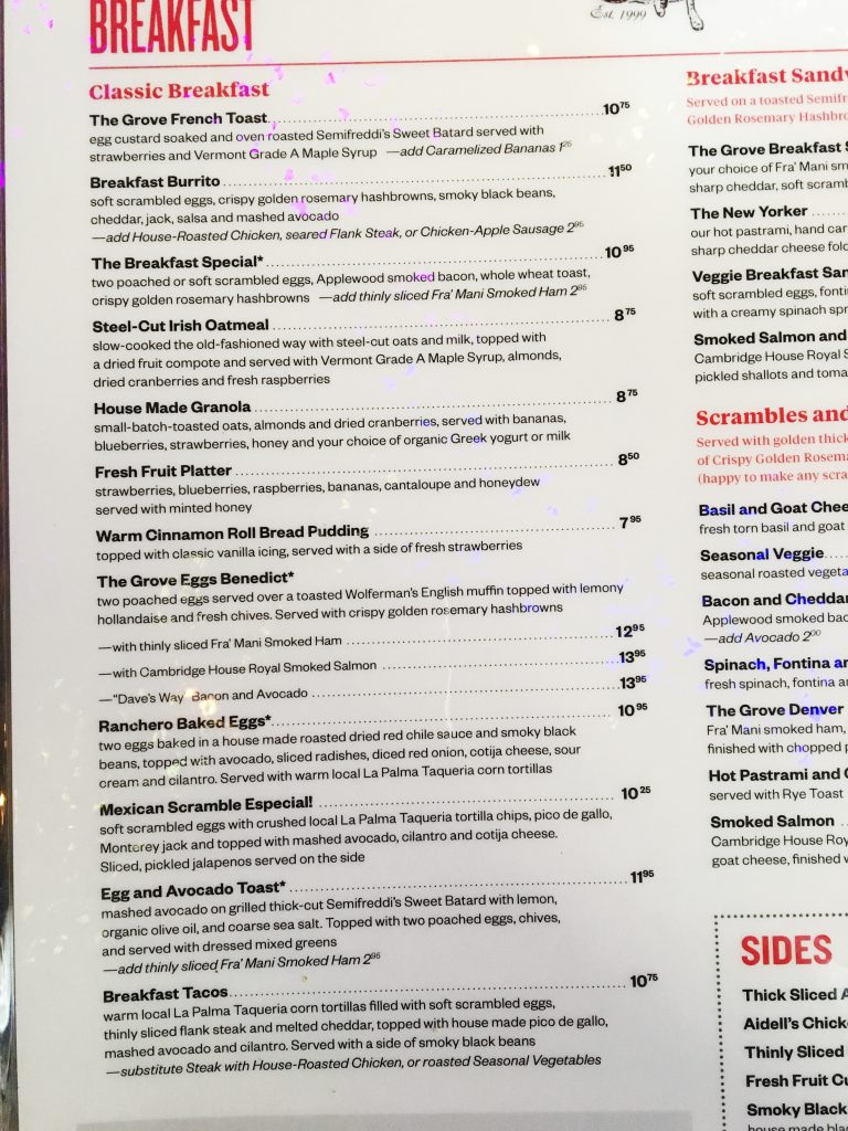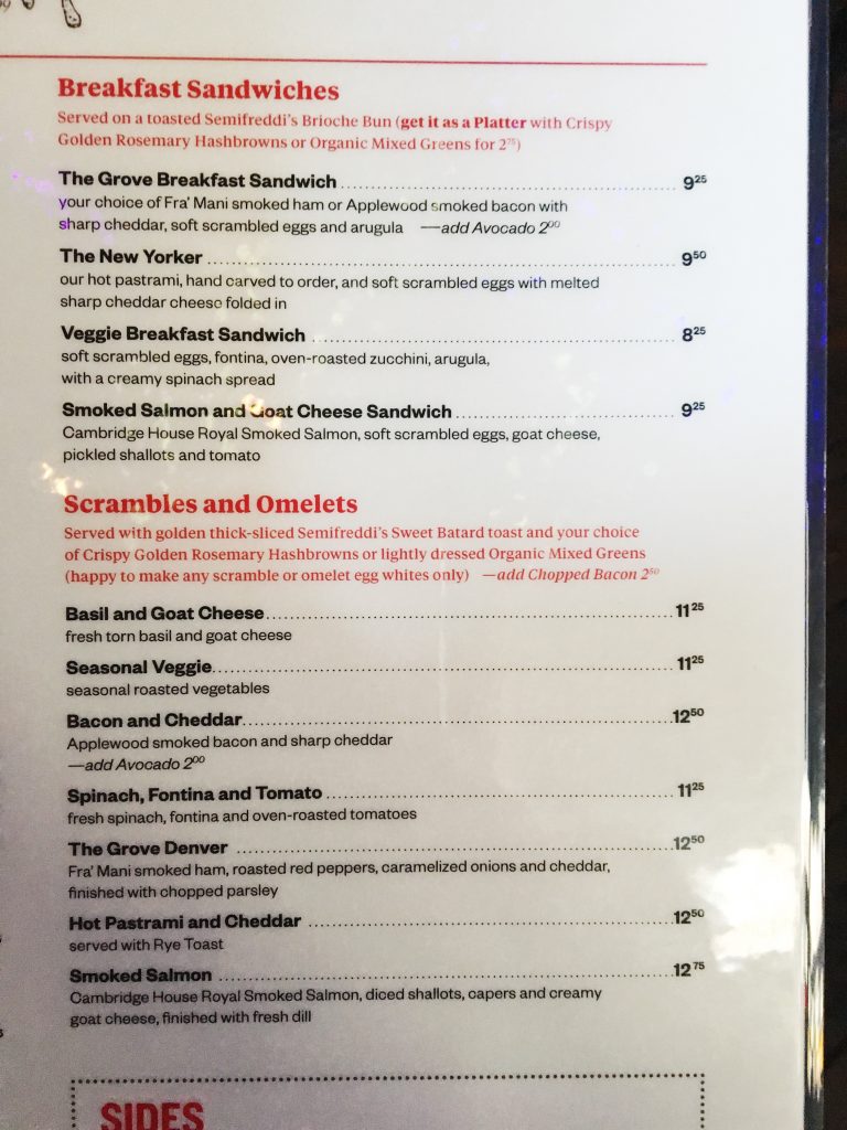 Na dnešní ráno jsem se strašně těšila snad celé tři dny. Konečně jdeme na snídani do The Grove (panda se o tomto místě zmínil už v článku San Francisco – 1. den) a já si dávám avokádový toast (pro změnu :D) se zastřeným vejcem. Mňam, to byla dobrota! Hned, až mi dozraje doma avokádo, si tento toast udělám – jestli teda zvládnu zastřené vejce, nemáte nějaké triky? 😀 Hakan si dal omeletu a prý taky super. Snídaňové menu tady mají opravdu široké, myslím, že si každý vybere. Dokonce nabízí i snídaně pro děti.