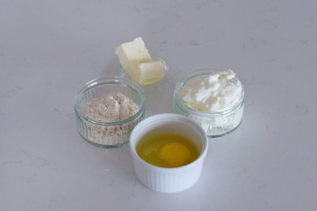 - Předehřejeme troubu na 180 stupňů. V misce smícháme tvaroh, vajíčko, celozrnnou mouku a rozdrobený balkánský sýr.